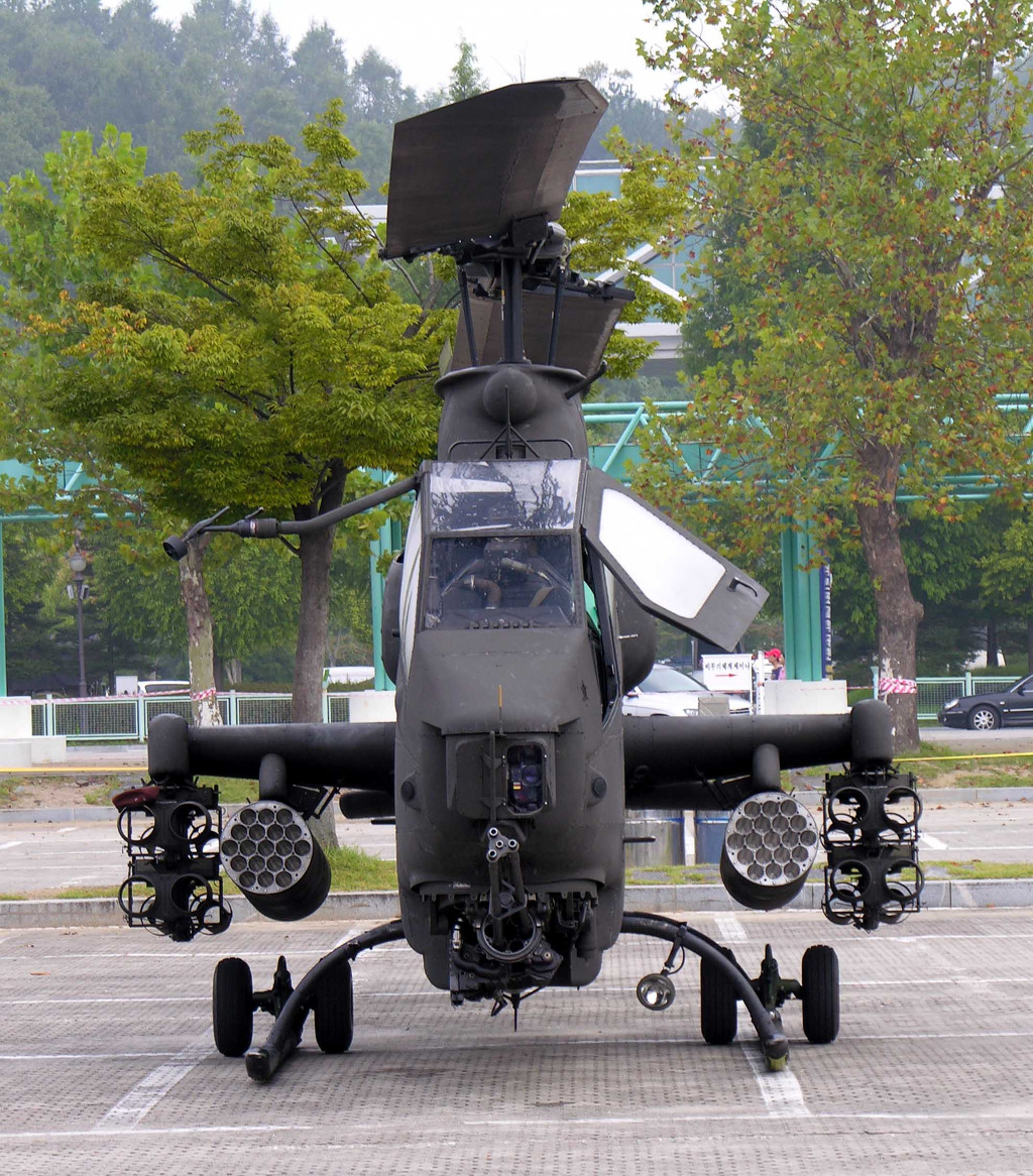 1976년 점증하는 북한군의 전차 방어를 위해 한국군이 도입한 최초의 공격헬기로 현재까지 한국육군에서 운용했던 공격헬기중 유일하게 "쌍발"엔진을 장착한 헬기 AH-1J SeaCobra (AH-1J International Cobra라고도 합니다) 입니다.