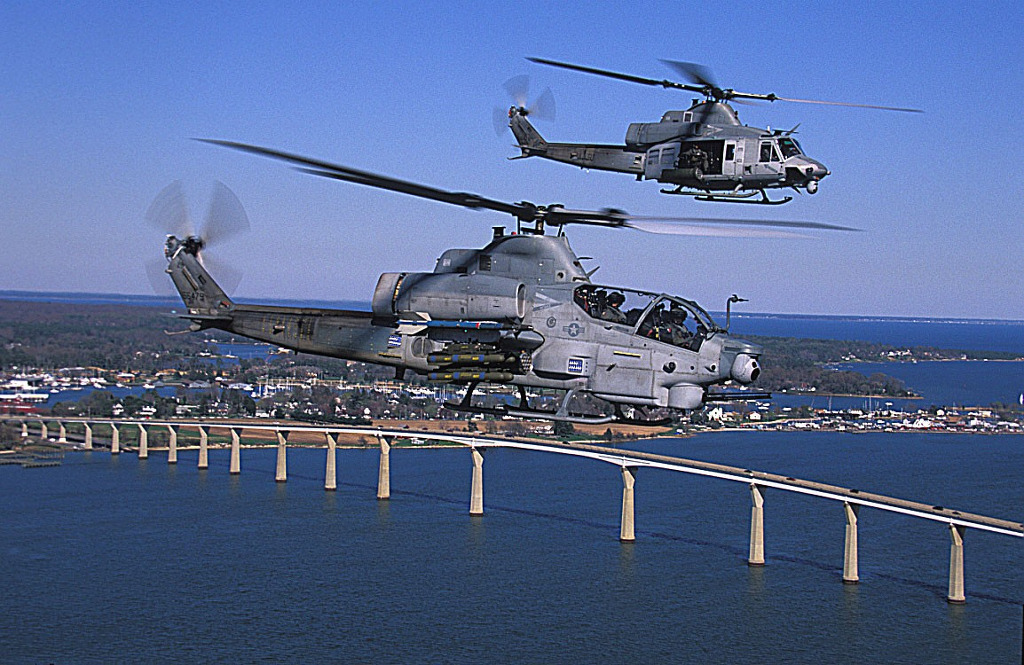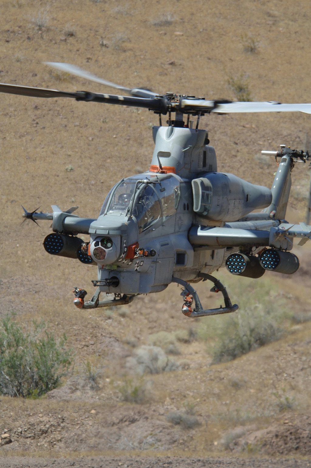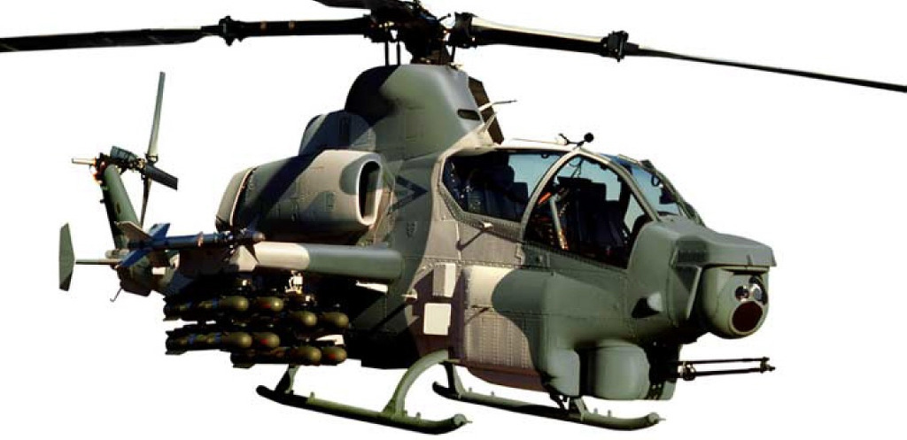 [AH-1W 는 AH-1 의 최신버젼으로 AH-64 아파치와 같은 무기 조합이 가능해 폭넓은 무장 탑재력을 자랑한다.]