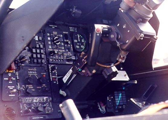 [AH-1S/F형의 사수석의 모습 가운데 튀어나와 있는것이 조준장치이며 이곳을 보며 각종 무기를 조준 유도하게 된다]