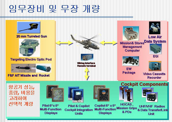 [한국군의 AH-F형에 있어 현재 절실하게 요구되는것이 바로 개량사업이다. 이는 부족한 출력의 엔진을 업그래이드 하고 현대 무기에 맞게 항전장비등을 현대화 하는것을 골자로 하고 있다]