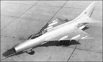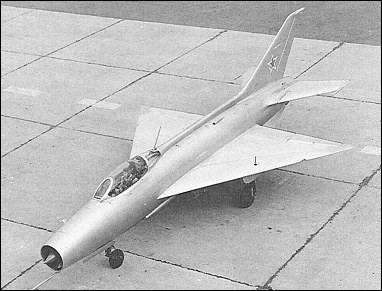 [초기 미그기의 시험기로 개발된 Ye-2기체의 모습 미그15~19에서 보여준 후퇴익과 독특한 형태의 수평미익등 미그21의 특징이 대부분 살아 있는것을 볼수 있다]