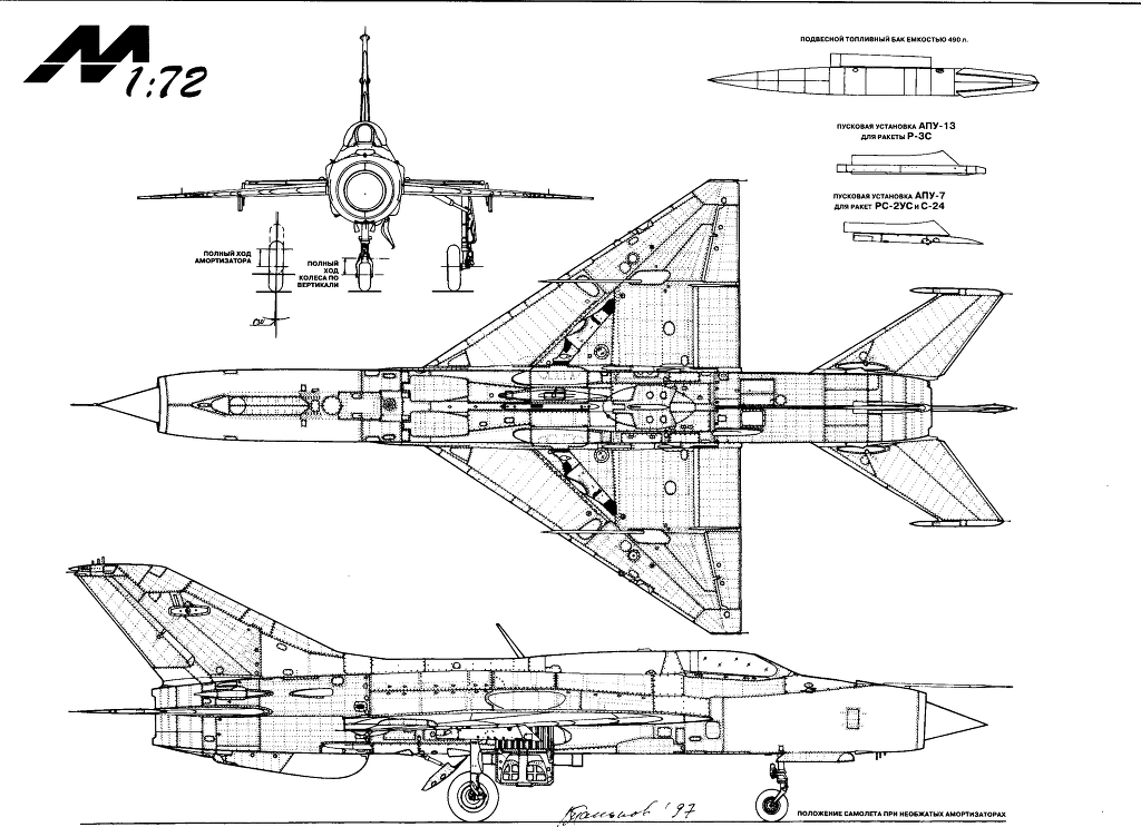m. MiG-21SM : R13-300 엔진을 달아 성능을 개량한 단좌식 요격전투기형.