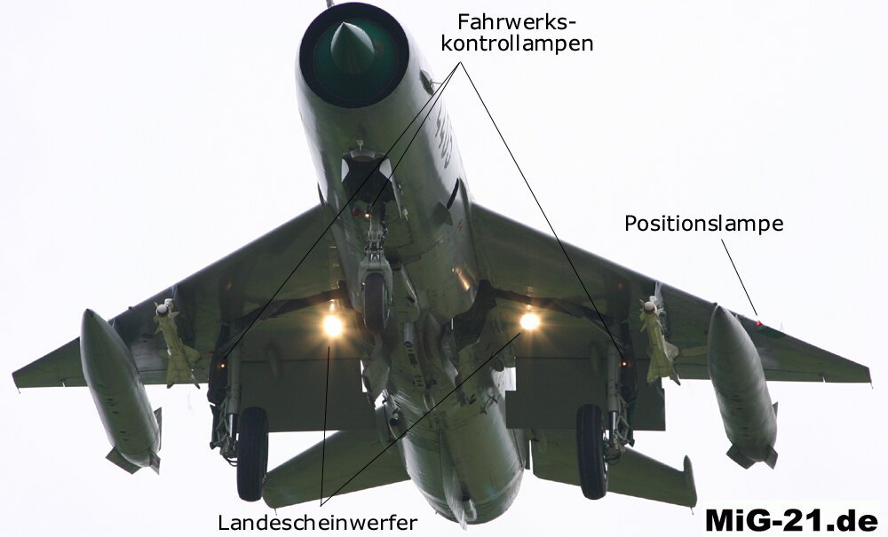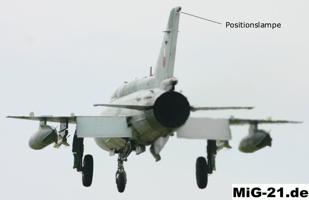 [제3기 MIG-21 부터는 추가된 조종석 후방의 페어링으로 인해 후방시야가 나뻐지자 이를 해결하기 위해 조종석 윗면에 돌출된 형태의 백밀러가 추가된것도 특징중 하나이다.]