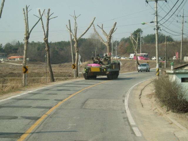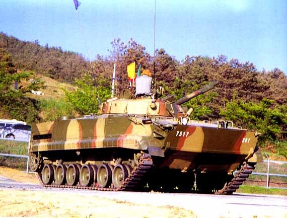 [한국군 도색으로 바뀐 BMP-3의 모습 초기에는 전남 장흥 전차학교 소속으로 적전술연구에 이용되었으나 현재는 전방의 모부대에 배치된것으로 알려져 있다]