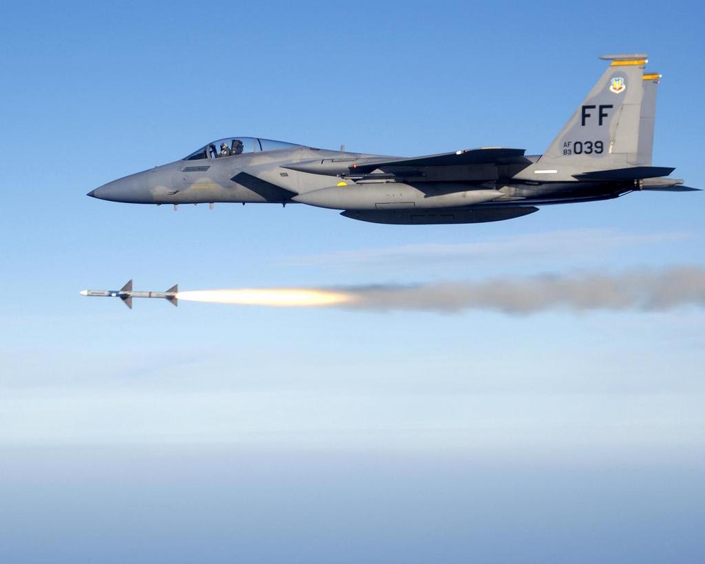[F-15 는 AIM-9 계열과 AIM-7 스패로우 미사일 각 4발씩 총 8발의 공대공미사일 장착이 가능하며 그외에 920발 정도의 20밀리 기관포탄을 장비한다. MSIP개량이 이루어진 C형 이후에는 AIM-7 스패로우 대신 AIM-120 암람 미사일을 대신 장착하고 있으며 이런 무장을 한채 두개의 증가연료탱크 탑재시 5,400 킬로 이상의 항속거리를 가져 어떤 전투기보다 우수한 항속거리를 가진 전투기이다.]
