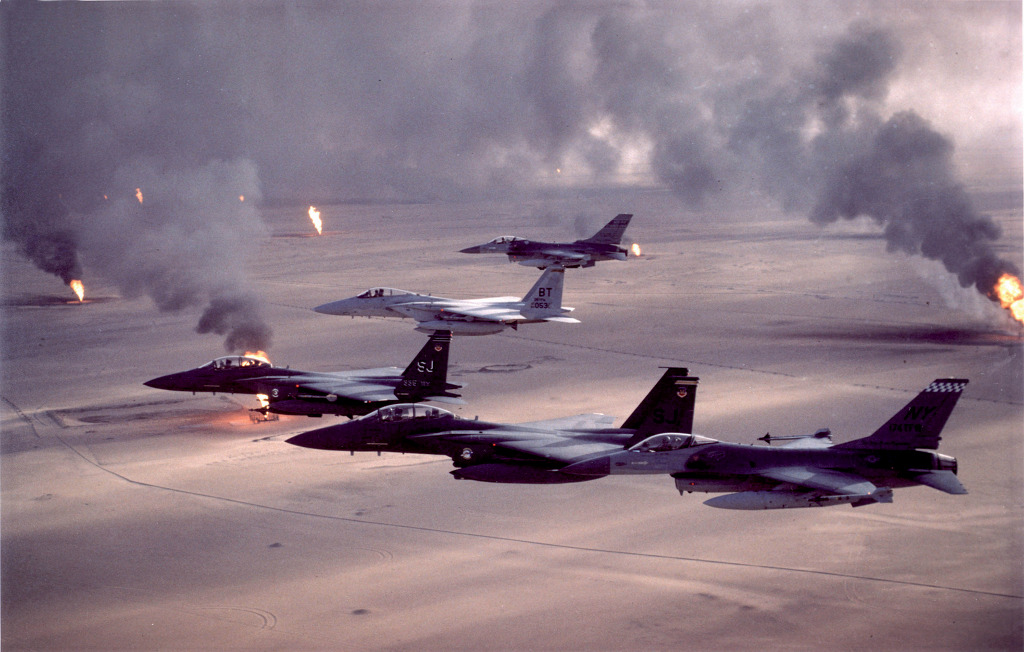 [1991년 걸프전은 이글의 성능을 유감없이 보여준 또 하나의 전쟁으로 미공군은 F-15C형 5대 비행대 와 F-15E2개 비행대를 투입하여 F-15C 115기 F-15E 48기라는 엄청난 수의 이글을 걸프만에 투입하였다. 이런 결과로 걸프전 기간동안 총 17기의 각종 이라크기를 격추하였으며 역시 단한대의 손실도 발생하지 않았다]