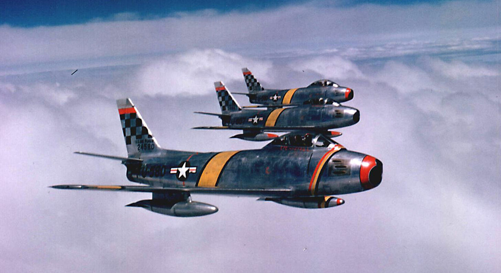[2차대전 이후 미공군은 '적의 전투기보다 한세대 앞선 성능의 전투기를 개발 공중에서의 우위를 선점한다.'라는 공중우세전략을 세워 실천하게 된다 그 첫번째 제트전투기가 바로 F-86 세이버 전투기 이다]