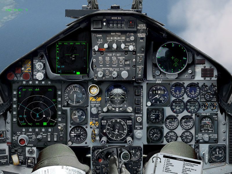[MSIP 프로그램중 레이다 교체사업은 두가지로 진행중인데 하나는 AN/APG-70 계열 레이더의 장착이고 하나는 AN/APG-63 (V)1,2,3 교체 프로그램이다. 이에 따라 장착되는 계기판형태도 다른데 사진은 AN/APG-63 (V)1 사양의 계기판이마 아래는 AN/APG-70 계열 레이더 장착기체의 계기판의 형태로 모양이 약간 다르다]