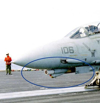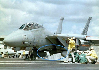 [TARPS를 장착한 톰캣. 동그라미 안에 보이는 것이 TARPS 포드이다. 이 포트는 정찰포드로도 이용이 가능하며 별도의 정찰기가 없는 미해군에 있어 중요한 임무를 위한 장비였다 ]