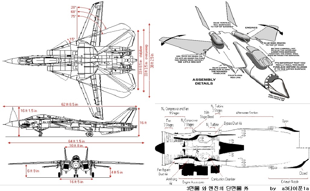 [F-14 톰캣의 분해도 톰캣은 당시로는 최첨단의 기술을 동원해 만든 미해군 최고의 함상전투기로 오늘날의 F-22 랩터와 견줄정도의 압도적인 우수한 성능을 보여주던 기체였다]