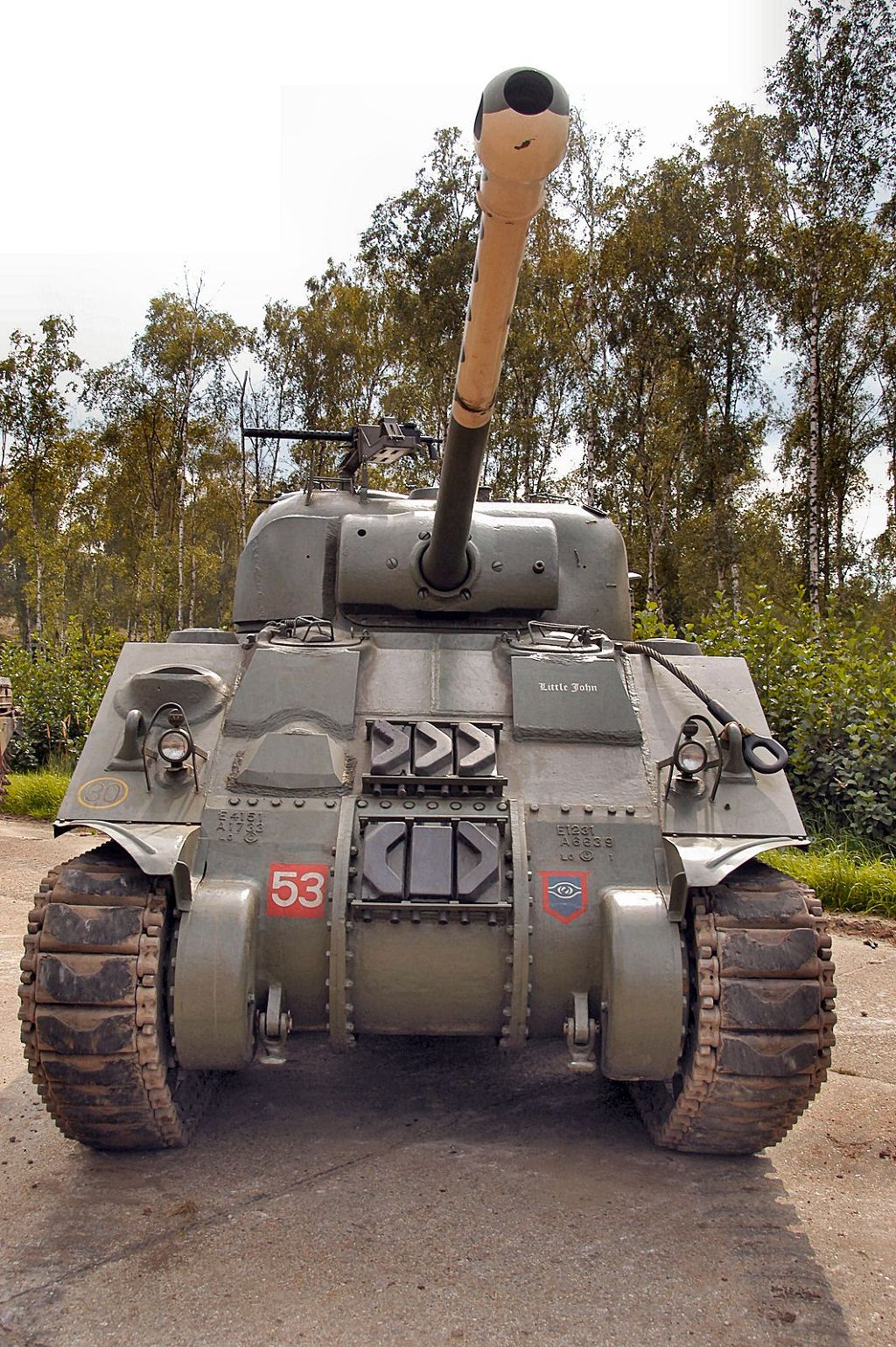 [어떤 셔만은 미국이 쓰기위한 전차가 아닌 특정나라에 공여하기 위한 전차로 만들어지기도 했다 사진의 셔만전차는 M4A4 형으로 이는 영국과 영국 우방국들에게만 공급된 셔만 전차중 하나였다]