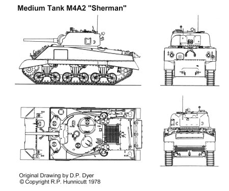 [M4 셔만 전차는 다양한 바리에이션으로 유명한데 이는 랜드리스에 의해 연합국에 공여되는 전차등이 있었기 때문이다 사진상의 타입은 M4A2형으로 이 전차는 디젤엔진을 두개 연결한 셔만전차이며 영국과 주로 소련군에 공여되어 러시안 전차로도 불린다]