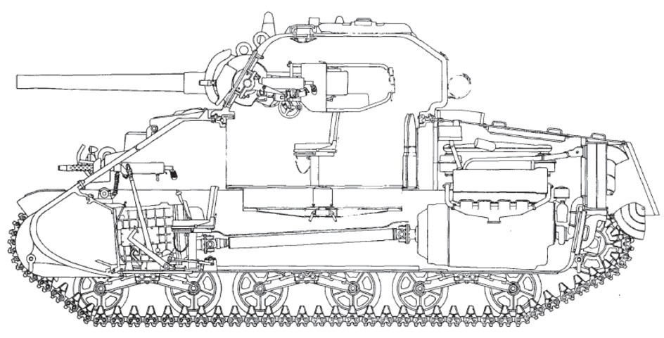 [셔만 전차의 구조는 간단했다.. 그리고 효율적이였다. 트럭이나 트랙터를 몰아본 농부출신이라변 몇주간의 교육을 받고 바로 전차의 운전수가 될수 있었다 500 마력급의 가솔린 엔진으로 구동되는 A3 타입은 모든 셔만전차중에 성능이 가장 좋았으며 미군만이 사용한 타입이기도하다]