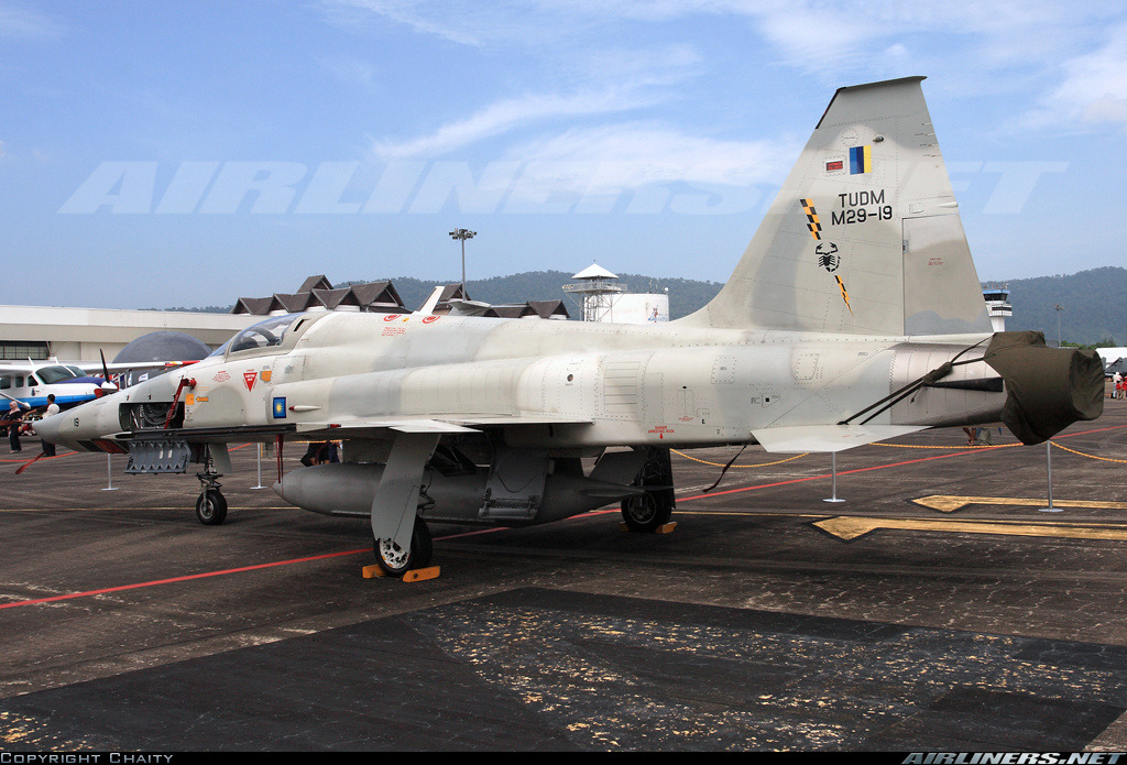 [싱가폴공군에서 운용중인 RF-5E Tigereye 의 모습 다른 기체들과는 달리 공중급유 프로프가 있는것이 특징이다, 싱가폴 공군은 RF-5S Tigereye 타입으로 불리는 기종을 3대 정도 보유중인것으로 알려져 있다]