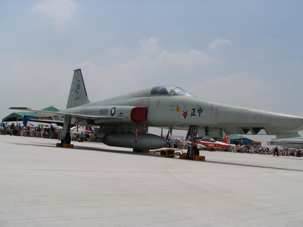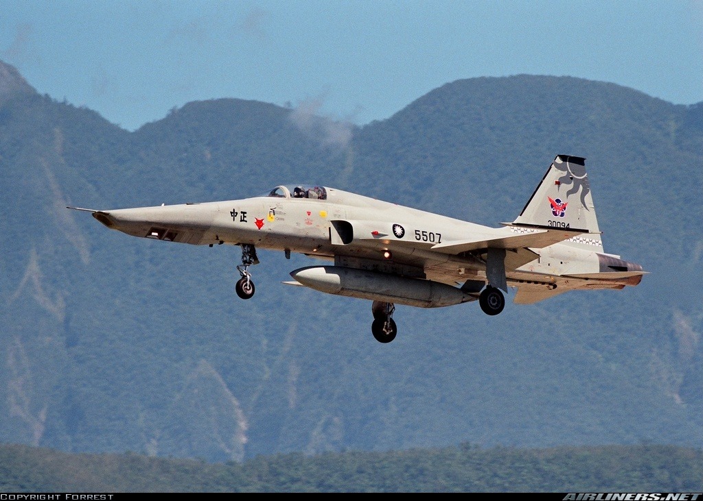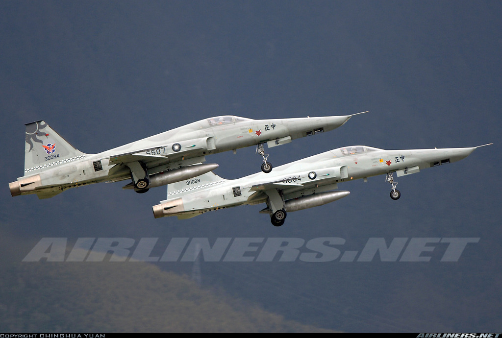 [편대비행을 위해 동시 이륙중인 대만공군 소속의 RF-5E 의 모습 이들 기체는 기체의 노령화가 심해 2005년도 부터 순차적으로 퇴역되고 있으며 추후 정찰형 기체는 F-16A 형을 개수한 정찰형기를 염두해두고 있다고 한다]