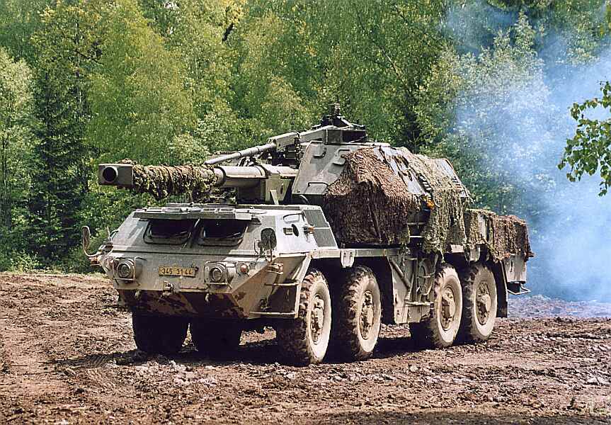 [장륜식 자주포의 장점이 가장 크게 발휘하는 부분이 이처럼 포장이 잘된 시가전에서의 운용으로 포장이 잘된 지역에서는 시속 100킬로가 넘는 속도로 고속이동이 가능하다]