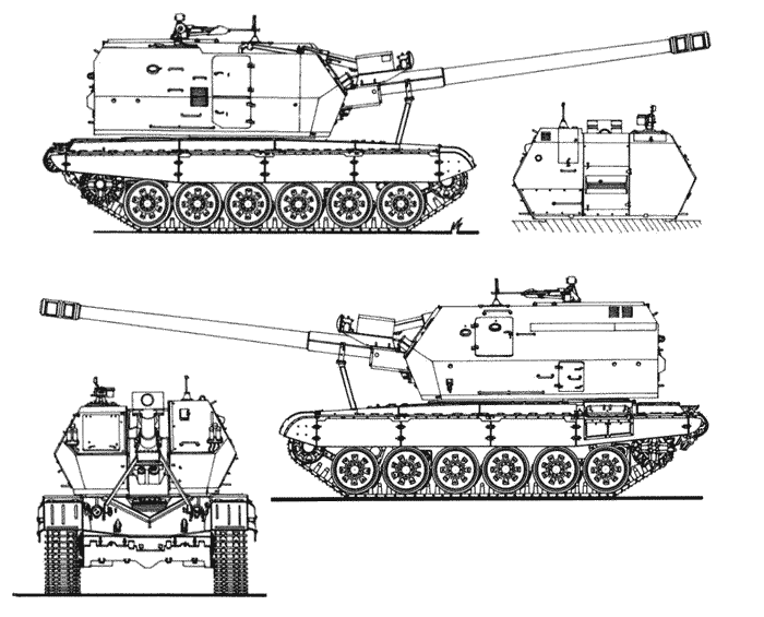 [장비하고 있는 주포는 구소련에 개발한 D-20 152mm 포를 개량한것으로 최대 18킬로의 사거리를 가지고 있다]