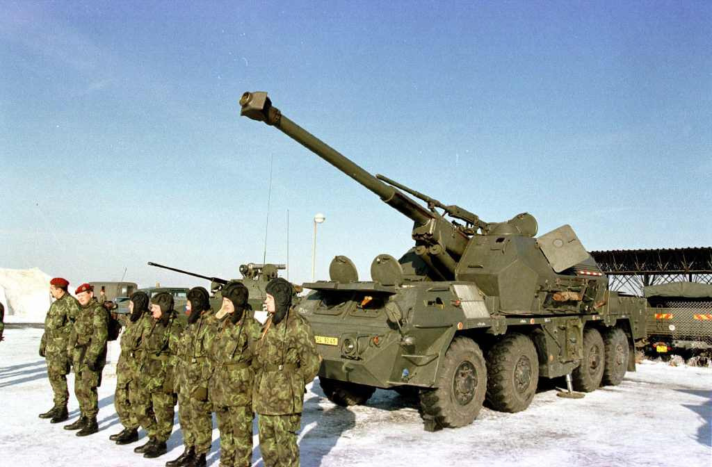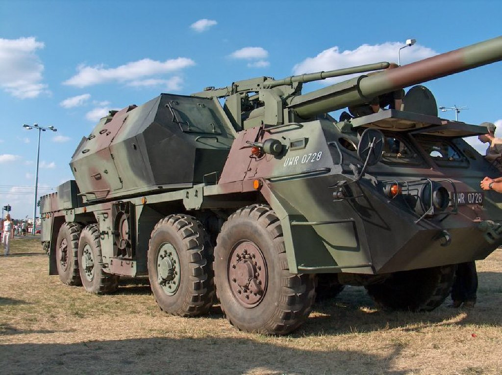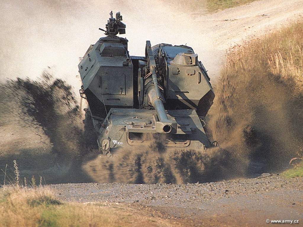 [체코군의 152mm Dana ShKH vz.77 의 모습 궤도식 차량에 비해 장륜식의 차체는 비용과 운용비용이 저렴하다 도로가 발달해 있는 유럽에서는 활용가치가 더 높다고 할수 있다]