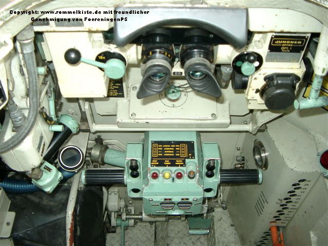 [S전차는 단 두명의 승무원으로도 전차의 운용이 가능할 정도로 모든 부분이 자동화 되어 있는데 포수와 운전사는 사진과 같이 등을 맞대고 앉았으며 포발사후 회피기동에는 강력한 2개의 엔진을 이용 후진 역시 전진시와 동일한 기동성으로 이동이 가능했다]