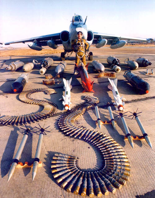 이밖에 Su-25기는 350kg∼670kg 크기의 다양한 레이져 유도식 폭탄과 500kg 중량의 소이탄및 일반 폭탄을 장착 할 수 있다.]
