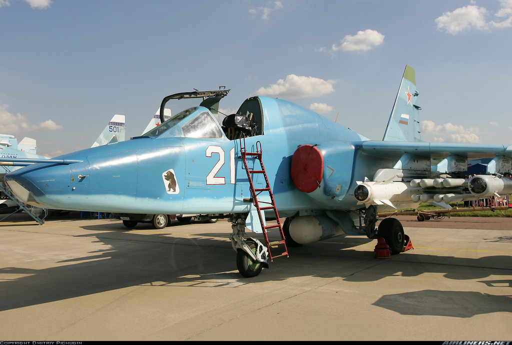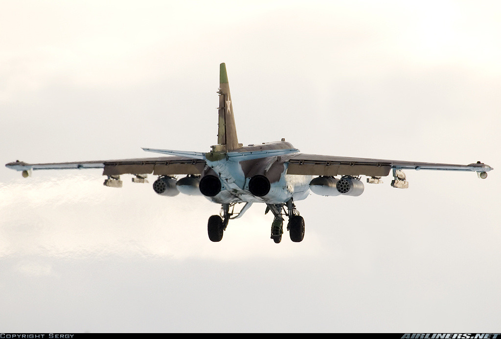 Su-25 는 소련판 A-10 이라 불리울 정도로 비슷한 설계사상과 또 비슷한 운용으로 많은 활약과 나름대로 성공을 거둔 기체입니다만 고질적인 문제점중 하나로 연료소비가 높은 제트엔진 장착으로 심한 매연과 고열이 발생 아프간에서는 이를 이용 미국이 제공한 보병발사용 지대공 미사일에 다수가 격추되기도 했습니다.