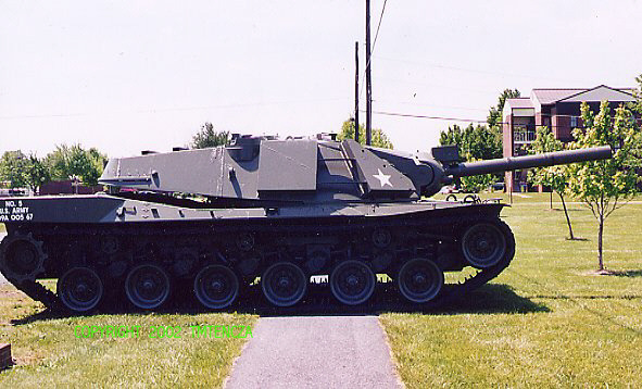 주무장은 미국측 초기사양에는 신형 XM-150 152mm 자동장전장치 건론쳐(gun launcher)를 장착하고, 각종 고폭탄/점착유탄/백린탄(AP/HE/WP rounds) 뿐만 아니라 시선 지령유도(Command to the Line of Sight) 방식의 MGM-51 Shillelagh 미사일(사거리 2000~3000 m)도 운용 가능하였다.
