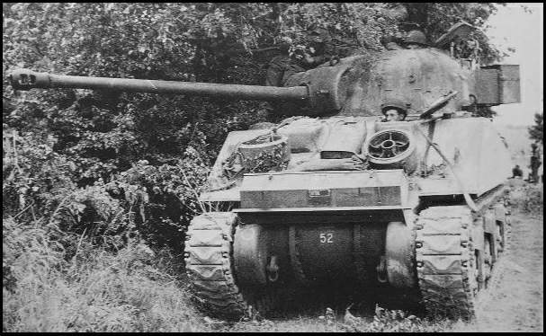 [노르망디 상륙작전후 해변에 상륙중인 셔먼 차체 후방의 그릴을 봐야 하겠지만 차체의 각진 형태 와 트랜스미션 커버 그리고 포의 형태로 보건데 M4A3 로 보인다. 하지만 이는 전문가라도 딱 100% 맞추기 힘든것으로 보통 작전 시기나 특히 엔진커버등을 보여져야 한다]