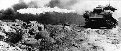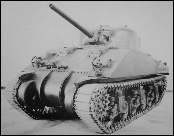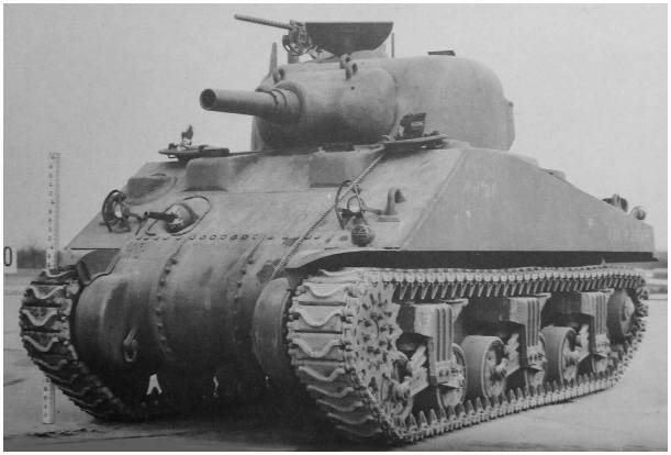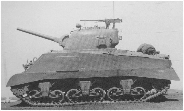 [전방에 3정의 7.62 밀리 기관총이 달려 있는 M4A2 초기형의 모습 쌍권총 좋아하는 민족이라 그런지 중무장을 즐겨했나싶다 물론 1정만 빼고 전원 페지..]