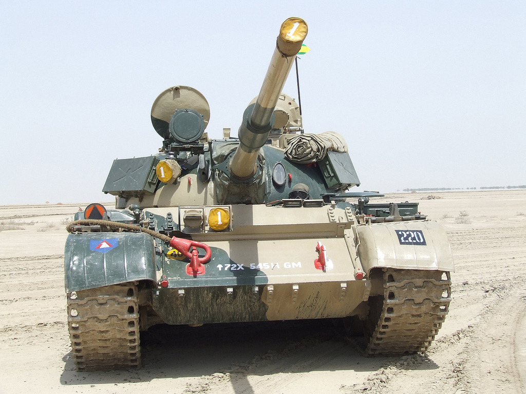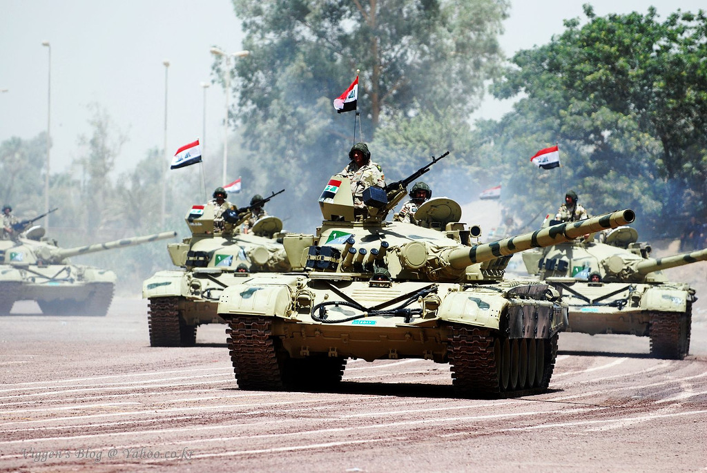 [현재 이라크군이 장비한 구소련제 T-72M1형 차량과 걸프전 당시 미군이 즐겨입었던 6색 일명 초코팁 무늬 전투복이 묘한 대조를 이룬다]