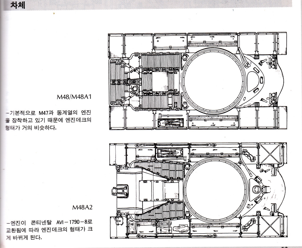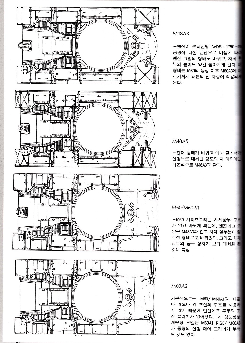 [호비스트에서 1993년 출간된 그레이트 아머 씨리즈 NO3 M48/M60 PATTON 이라는 단행본에는 각 패튼전차의 차이점이 일러스트로 잘 정리되어 있다]