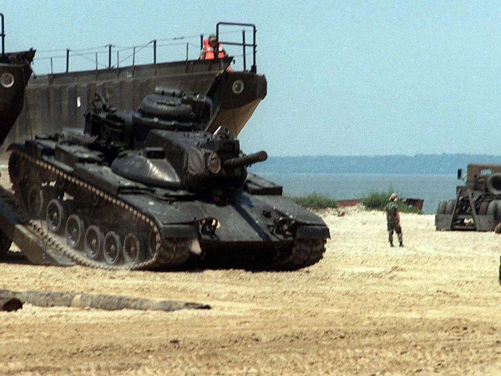 [이동중인 M46 패튼전차의 모습 한국전쟁에 급히 투입된 이 전차를 퍼싱전차의 단점을 급히 개량한 버젼으로 훗날 M47~M48/M60 으로 이어지는 패튼전차의 아버지뻘 되는 전차이다]