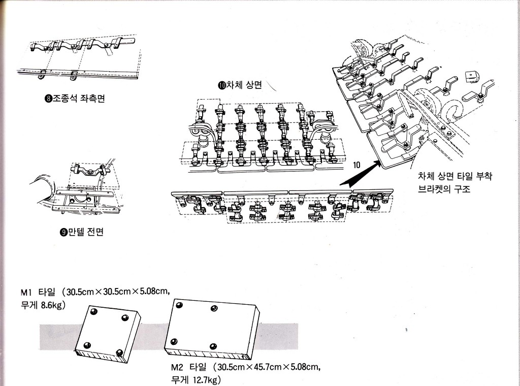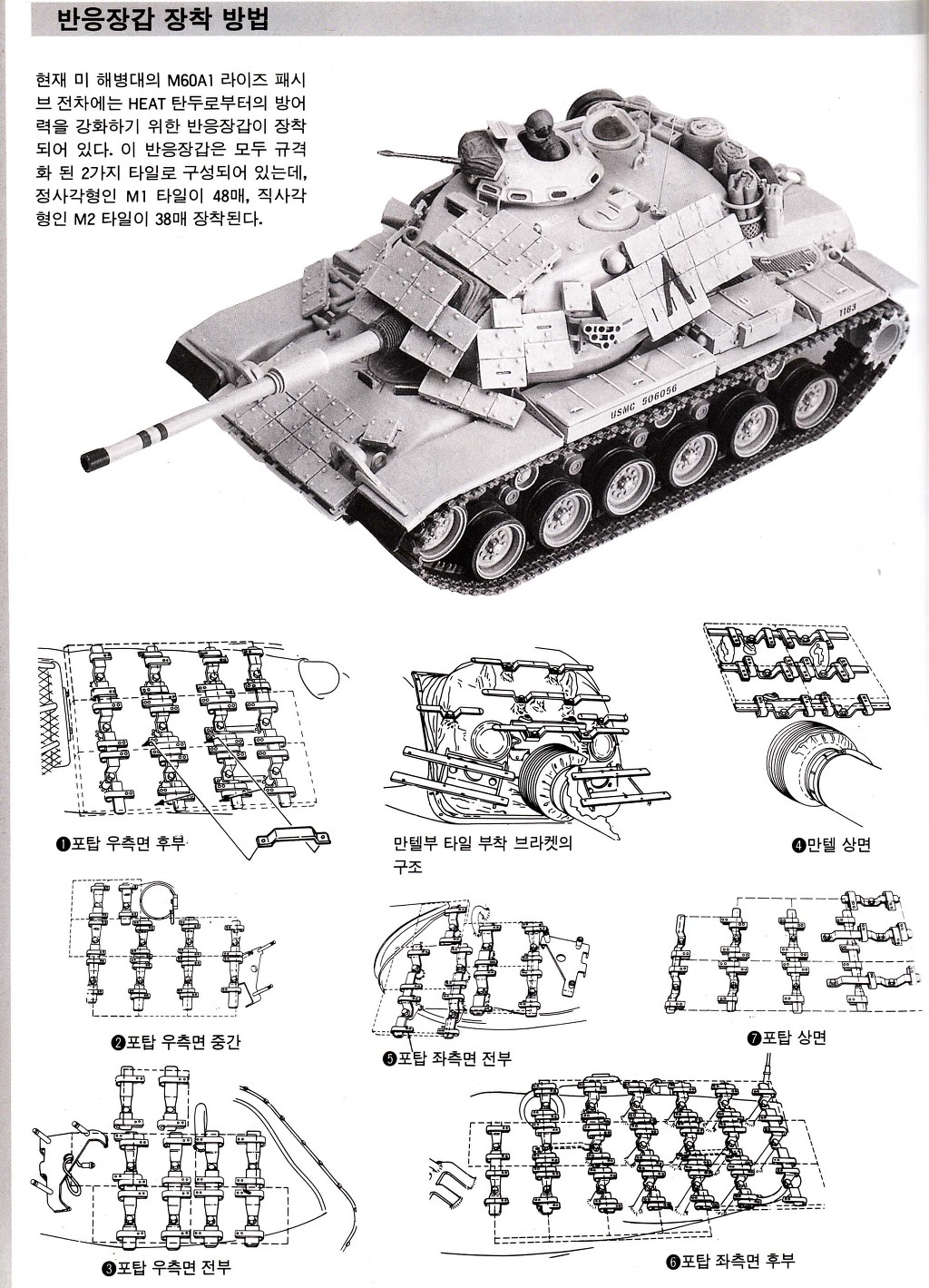[미군에 사용된 반응장갑은 두가지 규격으로 통일되어 있어 이스라엘제 보다 장착하기가 더 쉬웠다 림 출처는 호비스트에서 1993년 출간된 그레이트 아머 씨리즈 NO3 M48/M60 PATTON ]