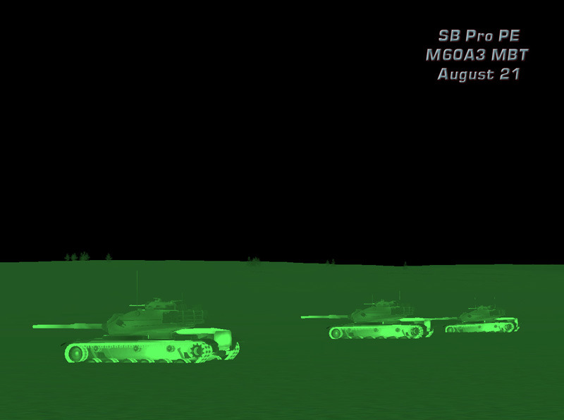 [M60A1(RISE/PASSIVE) 개량형에는 적에게 틀키기 쉬운 적외선 라이트 대신 별빛만 있어도 이를 증폭시켜 대낮과 같이 훤히 볼수 있는 광폭야시장비를 장착하여 야간전투 능력을 늘린 것이다. 야시장비를 이용해 관측된 전차들]