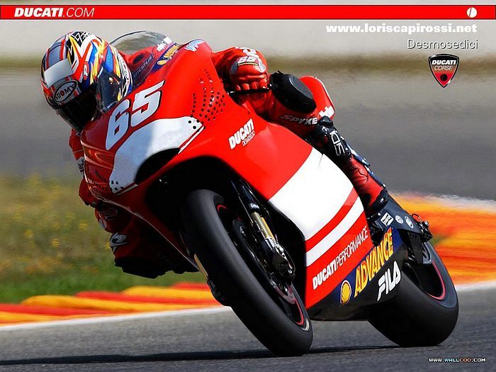 이탈리안 레드로 알려진 빨간빛을 한 멋진 라인을 가진 바이크 였죠.. 이름하여 데스모세디치 (Ducati-Desmosedici) 라 불리는 수퍼바이크로 989cc , 약197마력 의 V4 DOHC 방식의 "Double-L-Twin" 엔진을 장착하며 최대속도 시속 302 km/hr 내는데불과 9,49 초에 불과한 괴물과 같은 바이크였습니다.