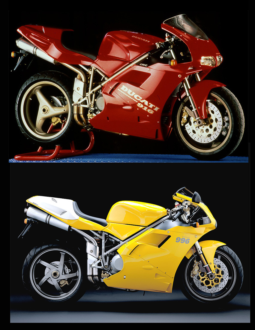 1990년대에 두카티가 월드 슈버바이크에서 거둔 승리는 888을 전설로 만들기에 충분했다. 더그 폴랜은 1991년 888을 타고 예측할 수 없었던 17번의 레이스에서 승리를 획득했다. 칼 포가티는 916으로 레이스 데뷔를 승리로 장식하며 곧이어 팸피언쉽 타이틀도 두카티에게 안겨주었다. 1996년엔 트로이 코서가 포가티를 제치고 우승을 차지했으며 두카티에게 7년동안 6번이나 챔피언십 타이틀까지 않겨주었다. 2년 뒤인 1998년 또한 잊을 수 없는 해인데, 혼다에서 돌아온 칼 포가티가 한땍 적을 두었던 홈 라운드인 일본에서 승리를 거둬들였다. 이듬해 이탈리아 레이스에서도 포가티는 승리를 획득했다.1999년 두카티는 916을 996으로 교체하면서 배기량 이외에도 다양한 개선을 가했다.