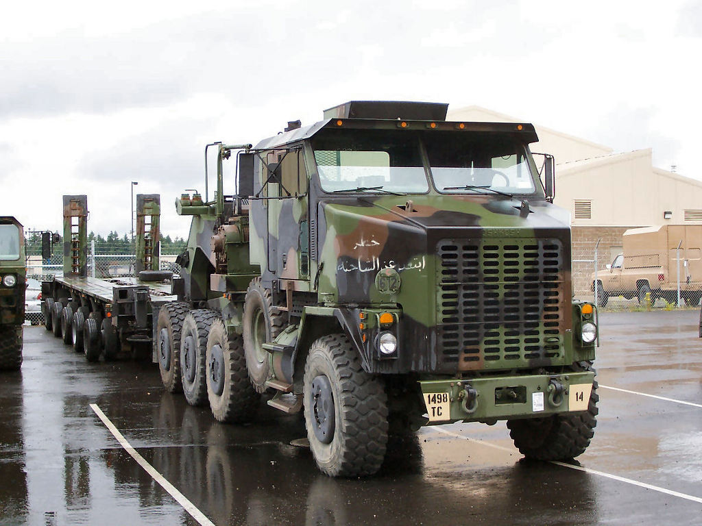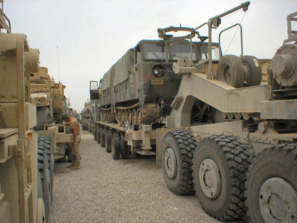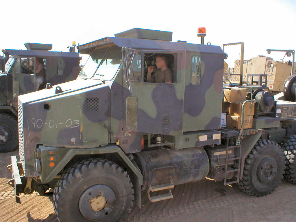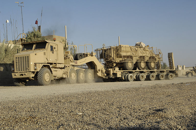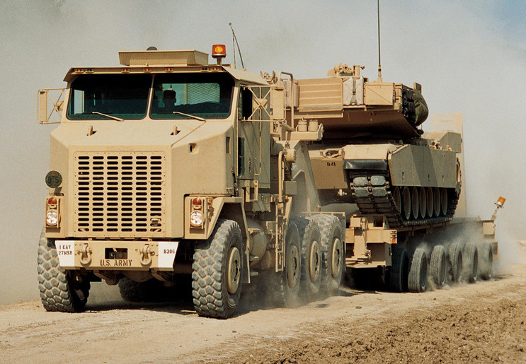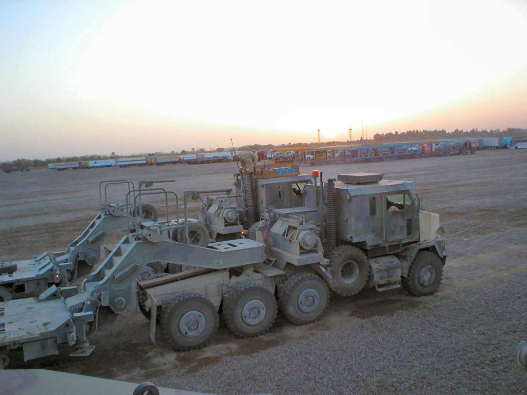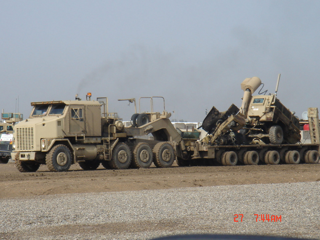 [이 트랙터들은 이라크전에서 맹활약을 보여주었다. M1전차나 M2 브래들리 장갑차를 장거리 운송할때는 반드시 이런 트랙터가 필요하다 그렇치 많으면 엄청난 기름을 소비하며 전투를 치루기 전에 대부분의 전차나 장갑차는 퍼지고 만다]