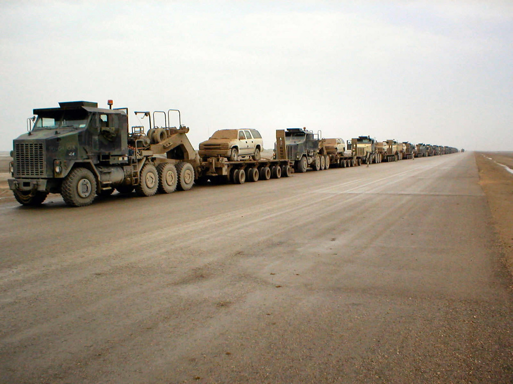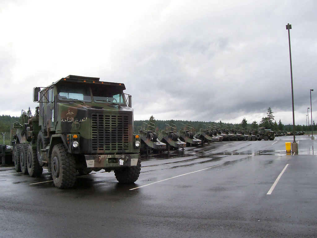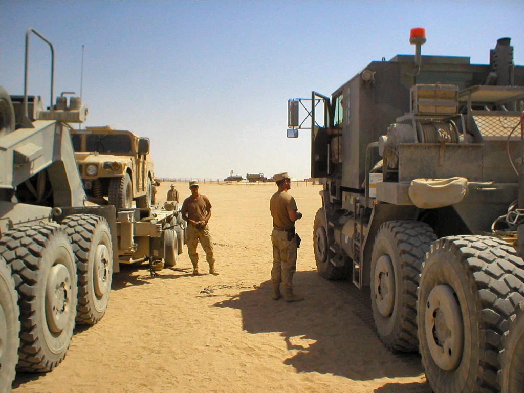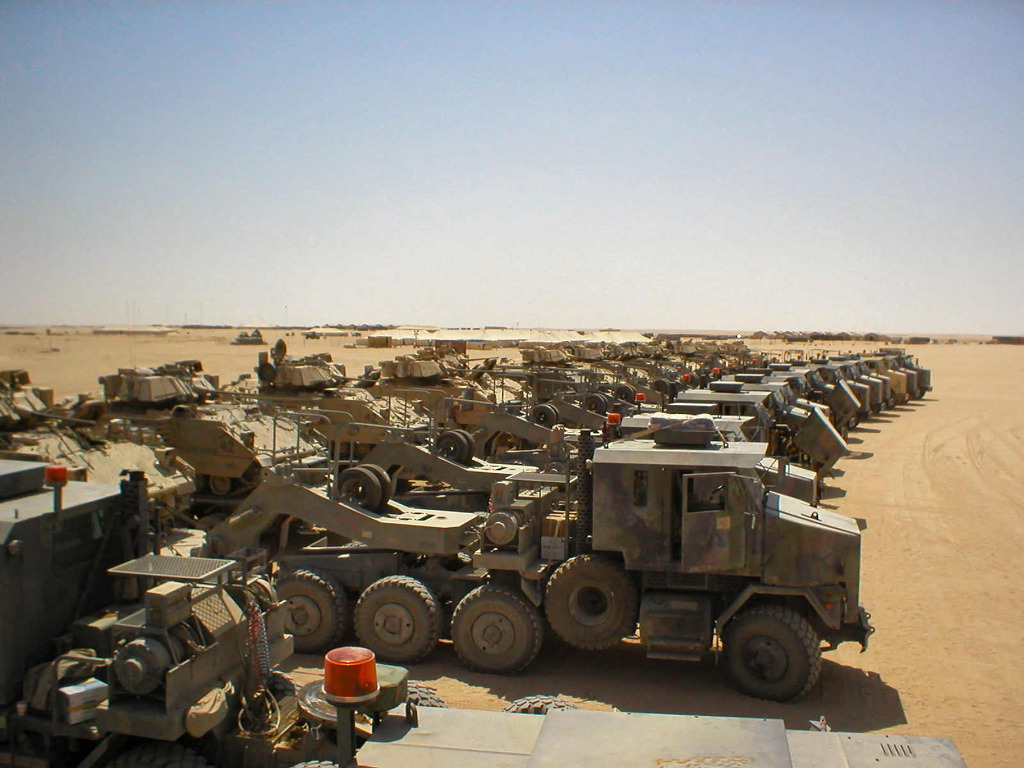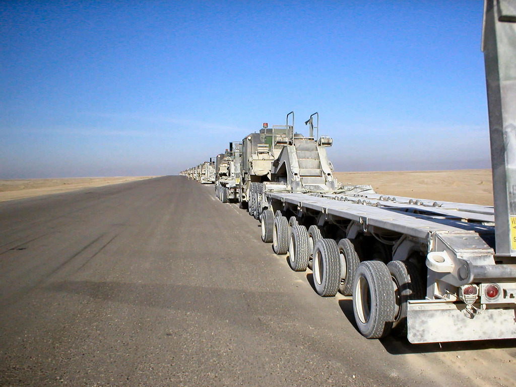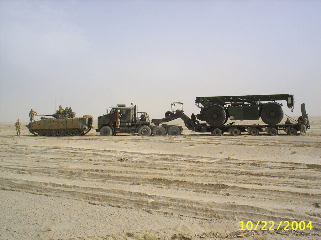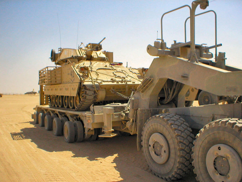 [이 트랙터들은 이라크전에서 맹활약을 보여주었다. M1전차나 M2 브래들리 장갑차를 장거리 운송할때는 반드시 이런 트랙터가 필요하다 그렇치 많으면 엄청난 기름을 소비하며 전투를 치루기 전에 대부분의 전차나 장갑차는 퍼지고 만다]