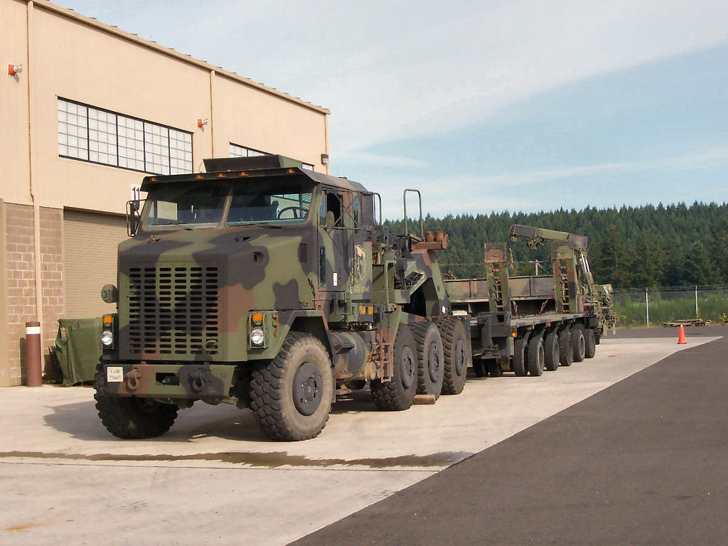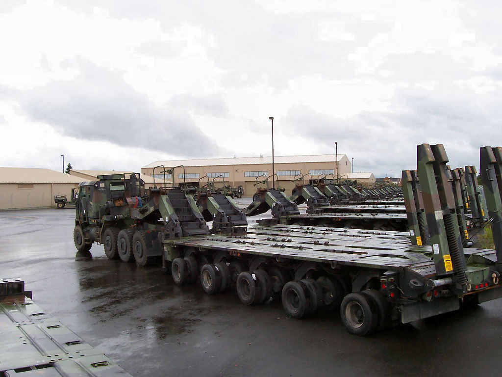 [ M1070 중량물 수송용 트랙터와 짝을 이루는 M1000 트레일러EH 이육군은 이 트레일러는 1,503대나 보유하여 군단의 중트럭대당 96대, 사단의 중트럭대별로 24대, 대대당 6대를 보유하고 있다.]