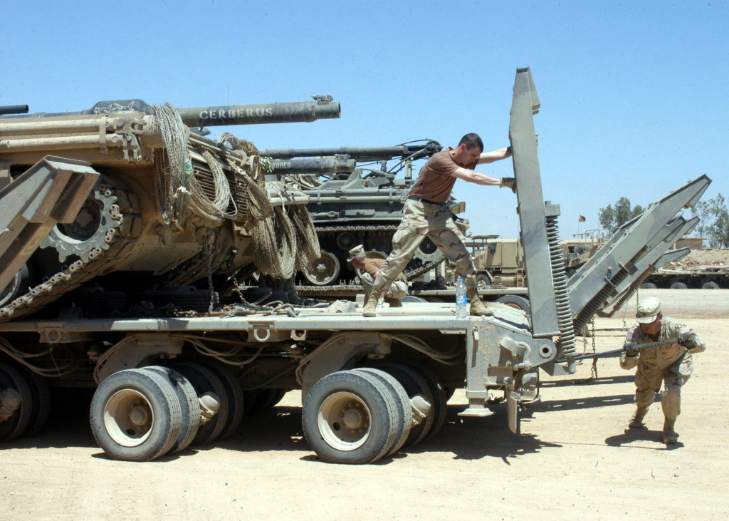 [ M1070 중량물 수송용 트랙터는 무려 70여톤의 화물을 운송할수 있어 M1 전차 같은 중량의 전차도 거뜬하게 운송할수 있는 유일한 장비중 하나 이다]