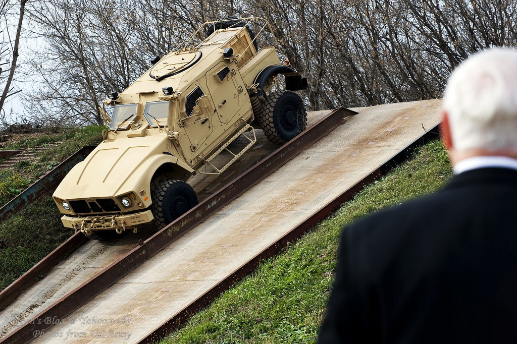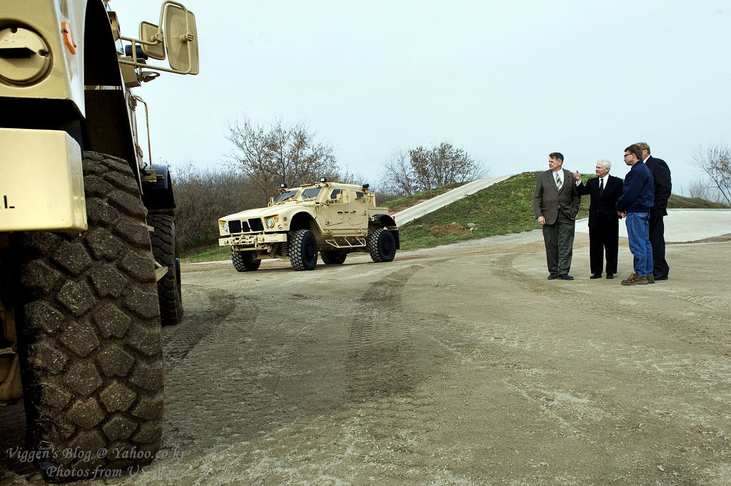 미국방장관 Robert M. Gates가 지난 11월 12일 위스콘신주 Oshkosh를 방문하여 아프칸 전용으로 개발되어 2차대전당시 M-4 Sherman 전차처럼 마구 찍어내듯 생산하고 있는 신형 Oshkosh M-ATV 기동시범을 지켜보았습니다.