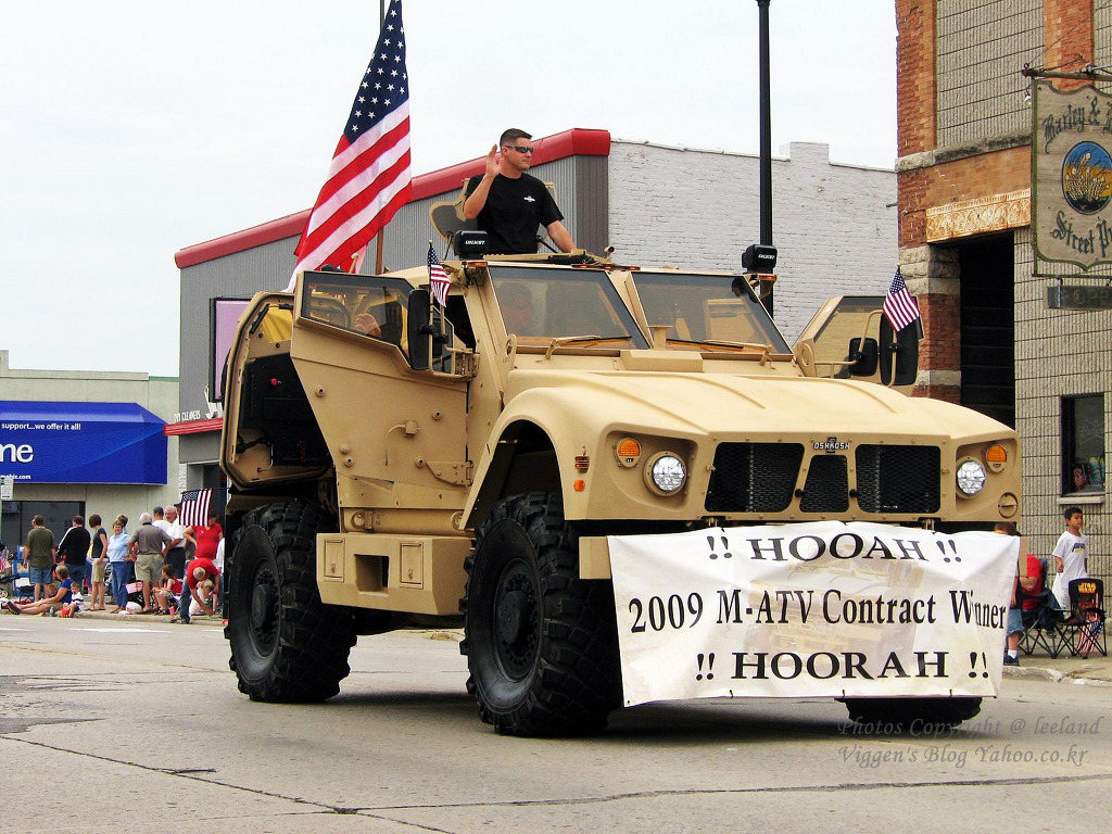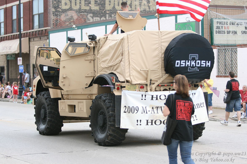 지난 7월 4일 독립기념일 행사에 참가한 Oshkosh사의 M-ATV가 위스톤신주 Oshkosh시에서 열린 퍼레이드에서 메인스트리트에서 행진중인 모습입니다