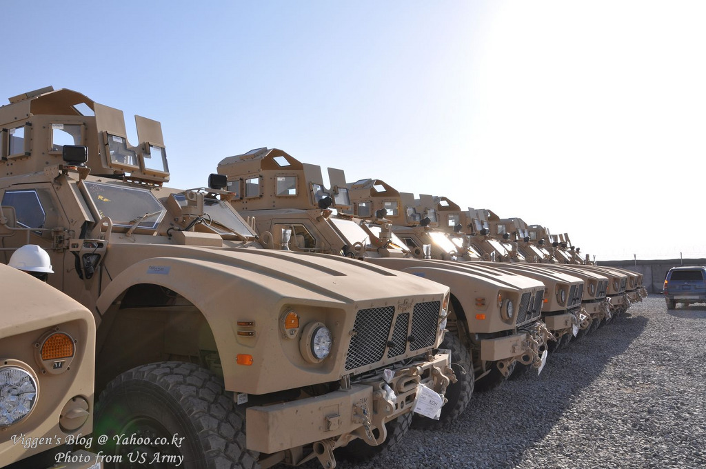 Oshkosh M-ATV는 무겁고 둔중한 MRAP (Mine Resistant Ambush Protected)의 단점을 보완하고 기동성을 살린 고기동 대지뢰장갑차로 아프간의 산악지형에 적합하게 설계된 최신 장갑차량 입니다.