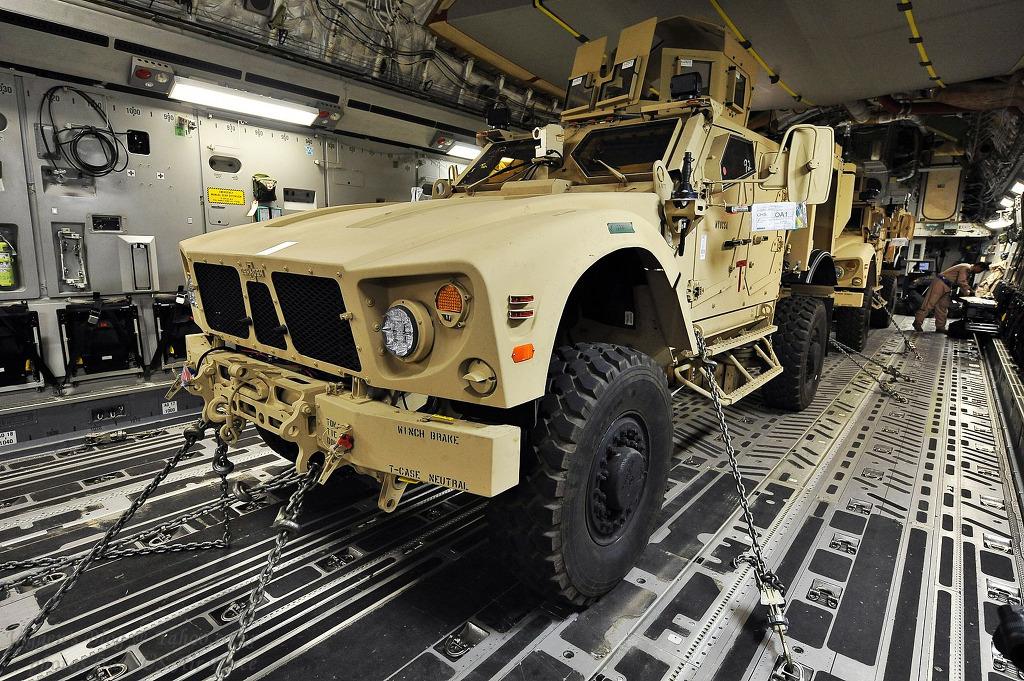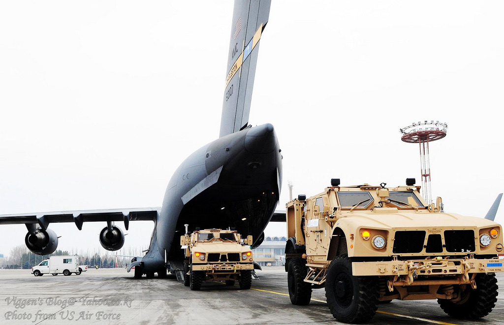 10월 1일 미공군 C-17 Globemaster III 수송기로 수송된 2대의 최신형 Mine-Resistant, Ambush-Protected All-Terrain Vehicle, 일명 M-ATV가 10월 1일 아프가니스탄의 Bagram Airfield에 도착하여 하역중인 모습입니다.