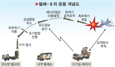 98년부터 개념연구에 착수, 현재 ‘철매Ⅱ사업’이라는 이름으로 체계 개발이 진행되고 있는 KM-SAM은 콜드 런칭 방식에 의한 수직발사체계 및 유도탄, 다기능 레이더, 교전통제체계로 구성된다. 다기능레이더(Multi-Function Radar)는 표적을 탐지·포착·추적하는 가운데 교전 통제소의 지시를 받아 적 표적을 요격하기까지 유도하며 동시에 다른 공간을 탐색할 수 있다.