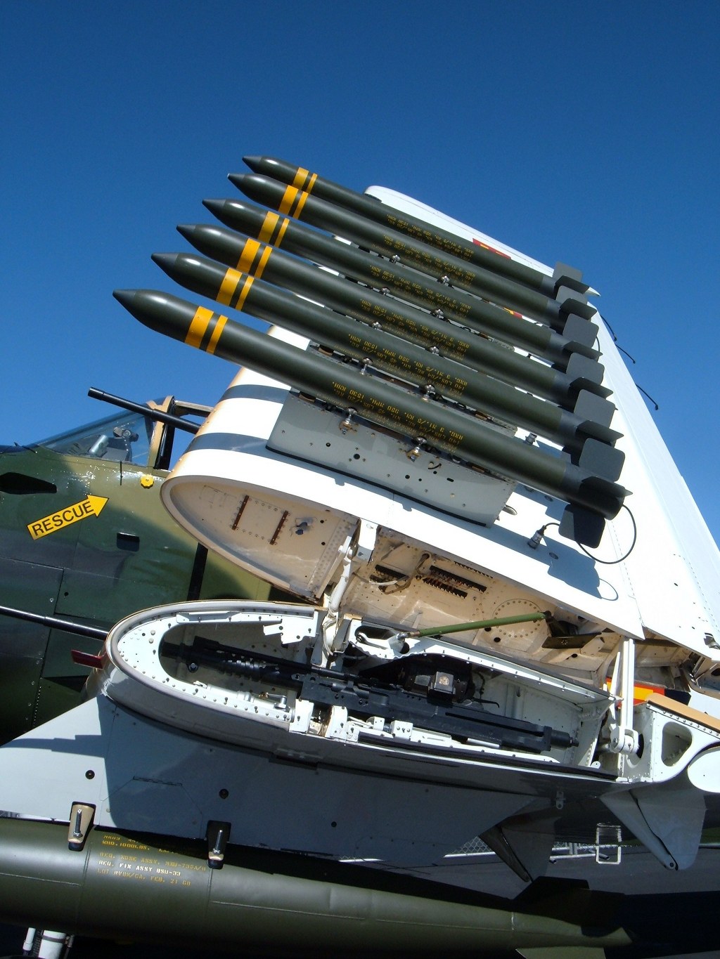 [주익의 7개의 파일런이 있었고 통상폭탄 혹은 네이팜탄 그리고 8인치 로켓을 장착할수 있었다. 주익사이도 20밀리 COLT사제 기관포가 보인다]