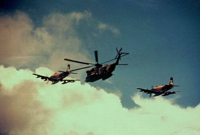 ↖ 구조작전 출격적인 스카이레이더.... 구출작전에서는 "샌디"라는 콜사인을 사용한다. (602nd SOS - NKP/DaNang - 1970-71)