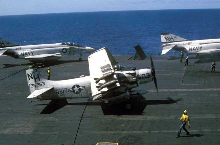 항모 인트레피드(CVS-11)의 VA-176 공격비행대 A-1H 스카이레이더. VA-176 비행대에서도 미그 킬러가 배출된다.