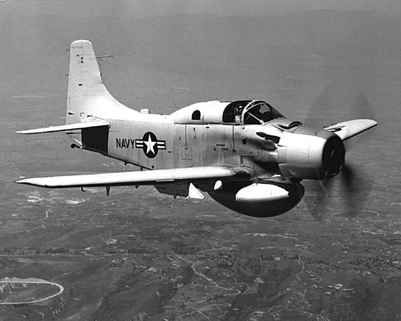 이 기체는 특히 프로펠러로 비행하는 한세대전의 기체면서도 특이하게 베트남전에서 Mig-17을 격추한 예도 보고되어 있으며 프로펠러기 자체의 강인한 생존성 (엔진이 상당히 큰 제트기들은 대공포화에 동체를 맞으면 엔진이 폭발하는 경우도 있지만 프로펠러기는 엔진에 직격을 맞지 않으면 상당한 대공포화를 버텨내면서 날 수 있다.)과 높은 가동성 그리고 제트전투기에 비해 저렴한 유지비용 (제트전투기는 그야말로 날아다니는 돈덩어리로 연료소비부터 기체 가격 유지비까지레시모프 항공기와 상대가 되지 않았다)에다 성능까지 우수해서 한국전에 이어 베트남전에도 투입되어 1972년까지 미해군을 비롯 미공군 (마땅한 근접지원항공기가 없었던 미공군은 미해군의 A-1J형을 빌려 사용하였다) 에서까지 널리 운용되었습니다.