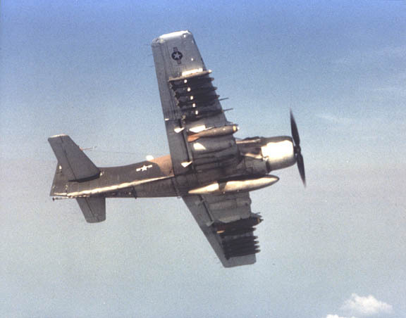 해군용으로 사용되던 60년대 초반 미군 당국은 스카이레이더의 강점에 인식 남베트남 공군에 공여할 기체로 지정했고 마침 미해군도 신형제트 공격기로 교체하던 중이라 잉여물자를 제공하게 된것이다.