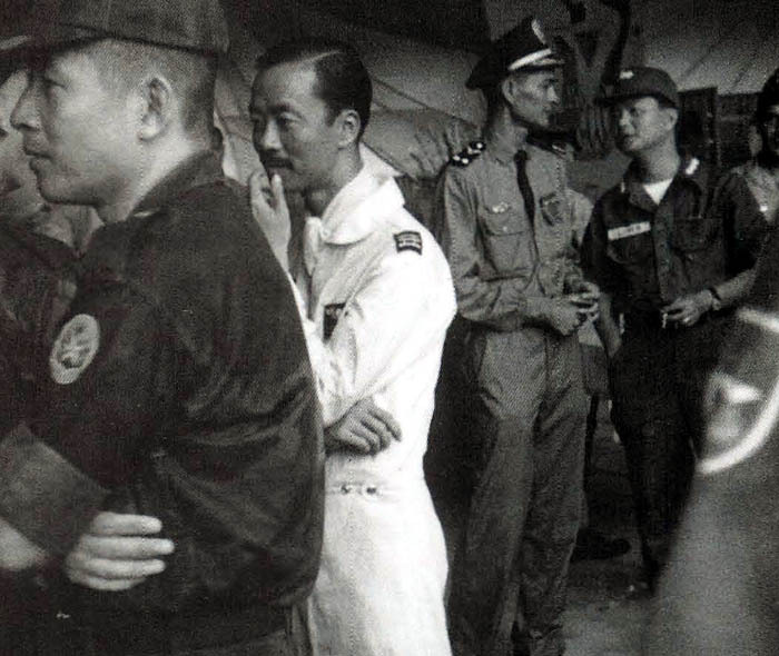 [밝은 색 비행복에 퍼플 스카프를 착용한 구옌 카오 키 준장 1966년 5월 7일 빈 투이 비행기지]